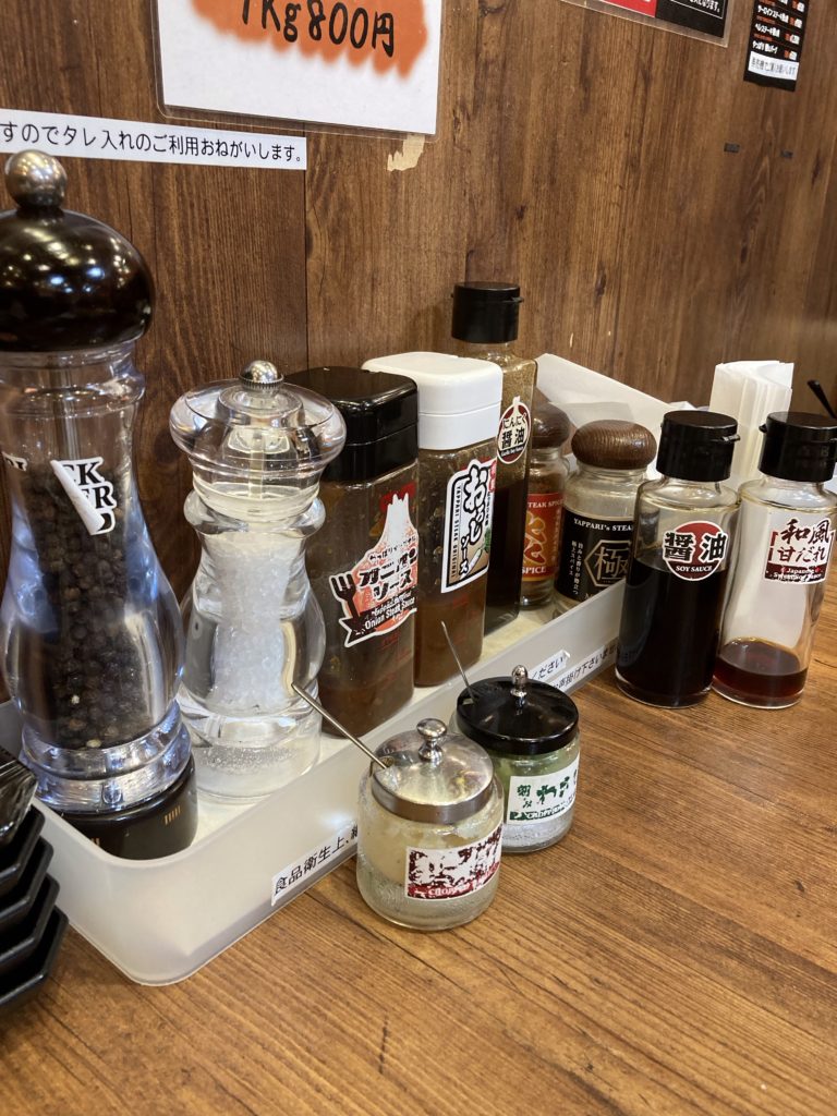 豊富な調味料でいろんな美味しさが発見できるのも楽しみのひとつ。