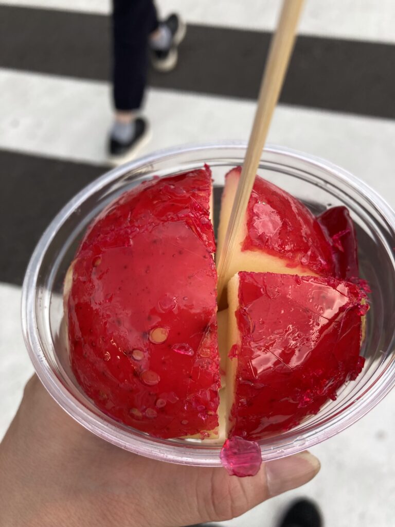 味は リンゴが柔らかく甘さは少なかったですが 飴の甘さで調和され美味しかったです。