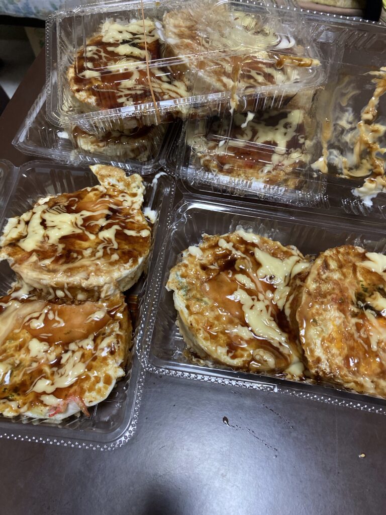 お好み焼きとたこ焼きのあいのこみたいな感じでしょうか。