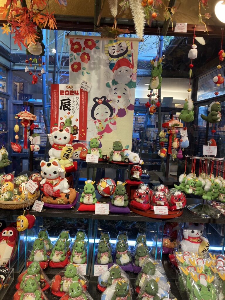 入り口には来年の干支『辰』の飾りが沢山並んでました