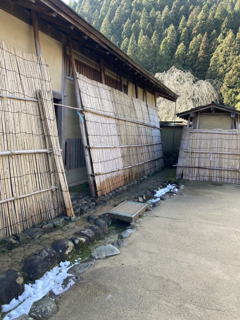 復原町並にある「上級武家屋敷」と「中級武家屋敷」それぞれの門を良く見ると、礎石の上に4本の柱を立てた門と地面に2本の柱を立てた門に分かれています。