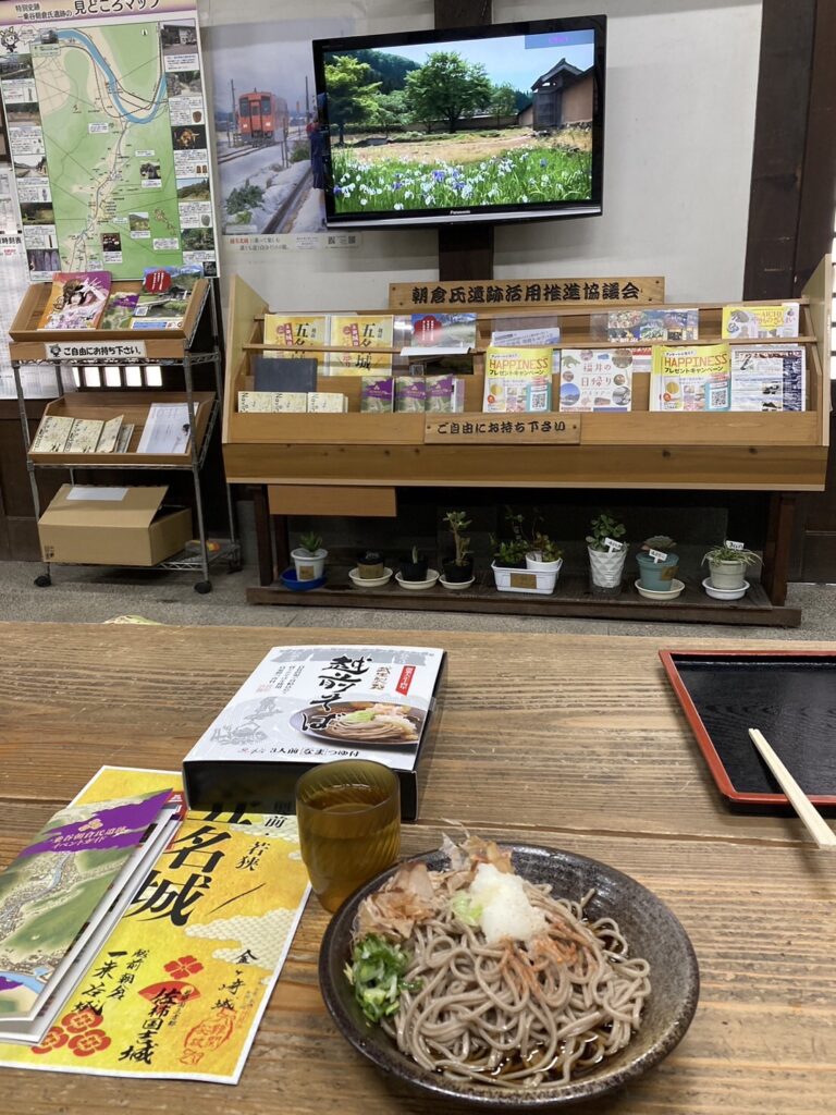 正面のTVでは 朝倉氏遺跡に関するビデオが流れています
