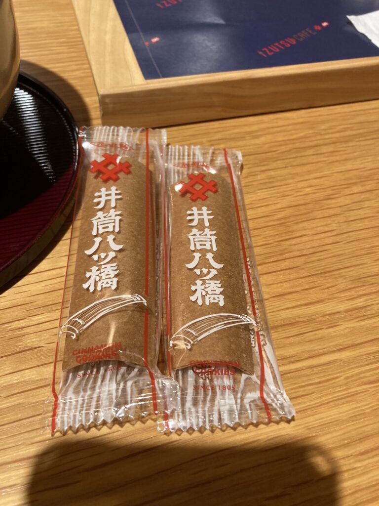 付け合わせに 八ツ橋のお菓子が付いてました😀