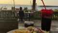 ジンベエザメのいる大型水槽を眺めながら軽食が食べられるカフェが隣接されています。