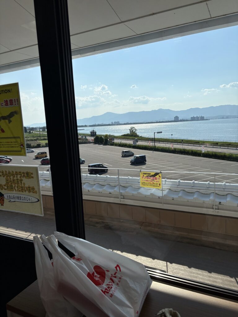 琵琶湖を眺めながら食べられる、サンセットテラスがおススメ。