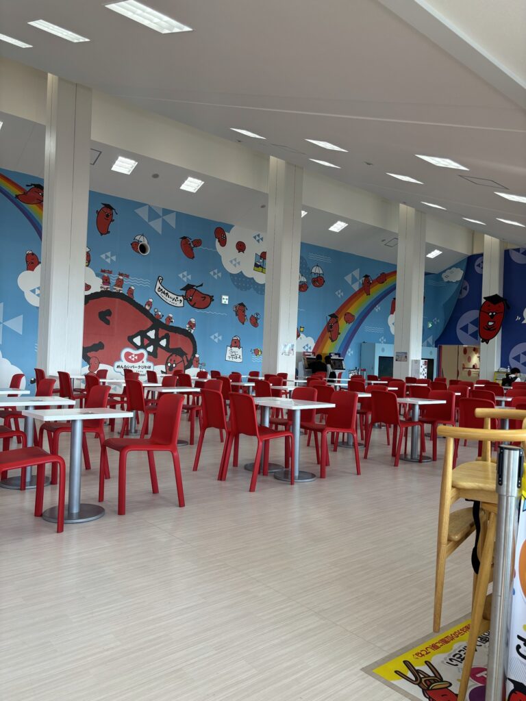 駐車場も広く、工場見学・お買い物もでき、2Fにはイートインスペースもあり、フードコーナーで購入した商品を食べることもできます。