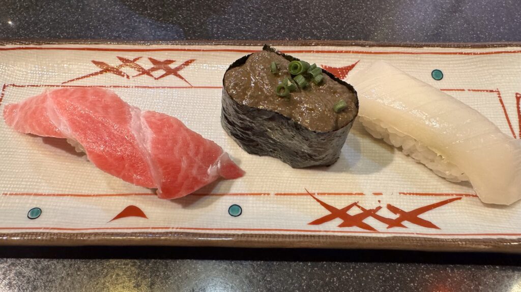 🍣 大トロ498円 ・ かにみそ198円 ・ いか148円