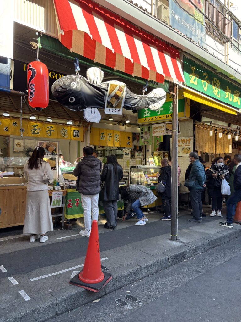 みんなとりあえず1つ200円の玉子焼きを買って食べていました